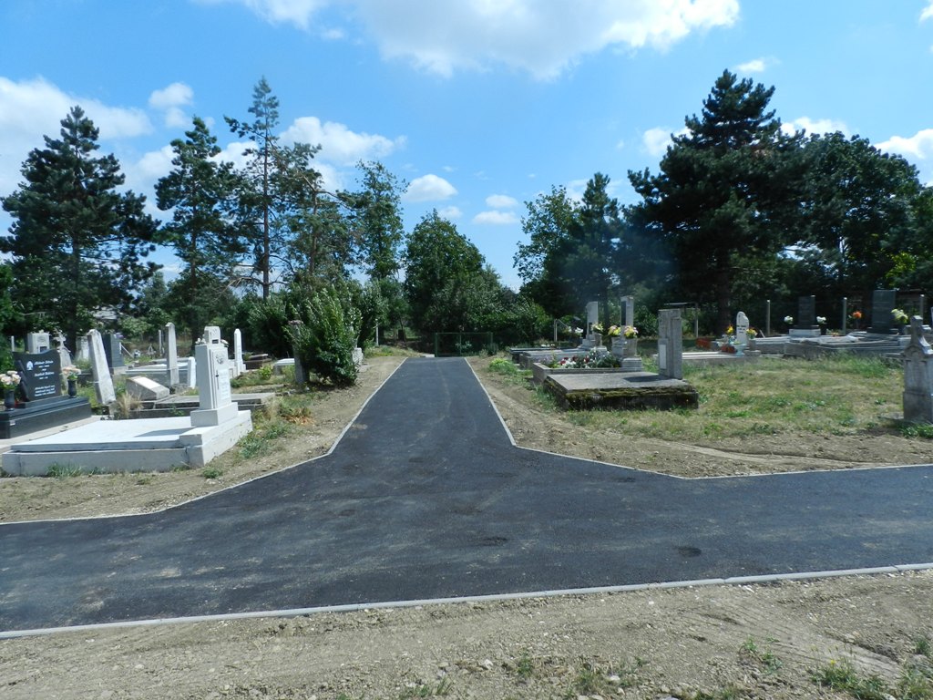 A szép új aszfaltozott temetői sétány